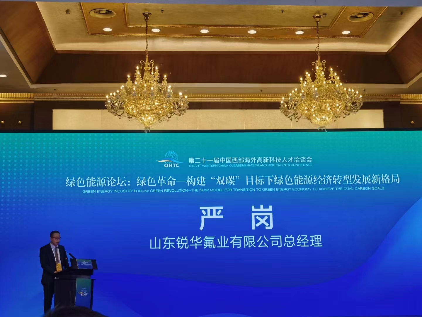 9月12日,第二十一屆中國(guó)西部海外高新科技人才洽談會(huì)“綠色能源論壇”在成都市舉行,山東銳華氟業(yè)總經(jīng)理嚴(yán)崗代表公司參加論壇,并作綠色能源精細(xì)化工企業(yè)代表發(fā)言。